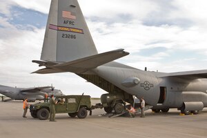 Six 96th Airlift Squadron Airmen and Two 934th Maintenance Crew Chiefs flew to the high altitudes of Colorado to take part in Exercise Patriot Express August 22-23. The annual Air Force Reserve Command-sponsored air mobility exercise is a multi-service event where AFRC Airlift Control Flight Airmen