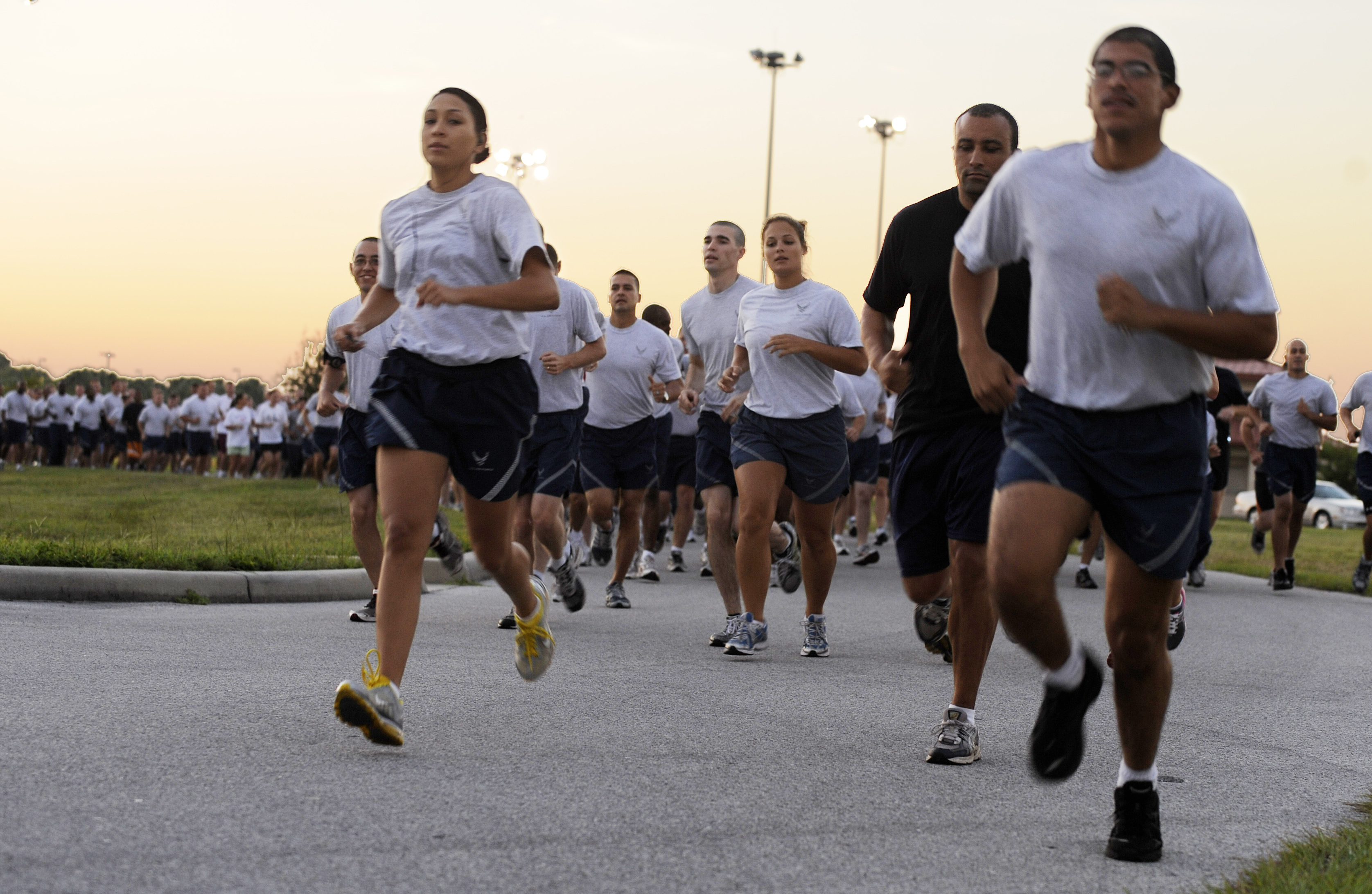 2nd Lt. Mark Graff , 6th Air Mobility Wing Public Affairs officer, speeds past fellow airman during the Air Force Birthday 5K Run at MacDill Air Force Base, Fla., Sept. 15, 2010.